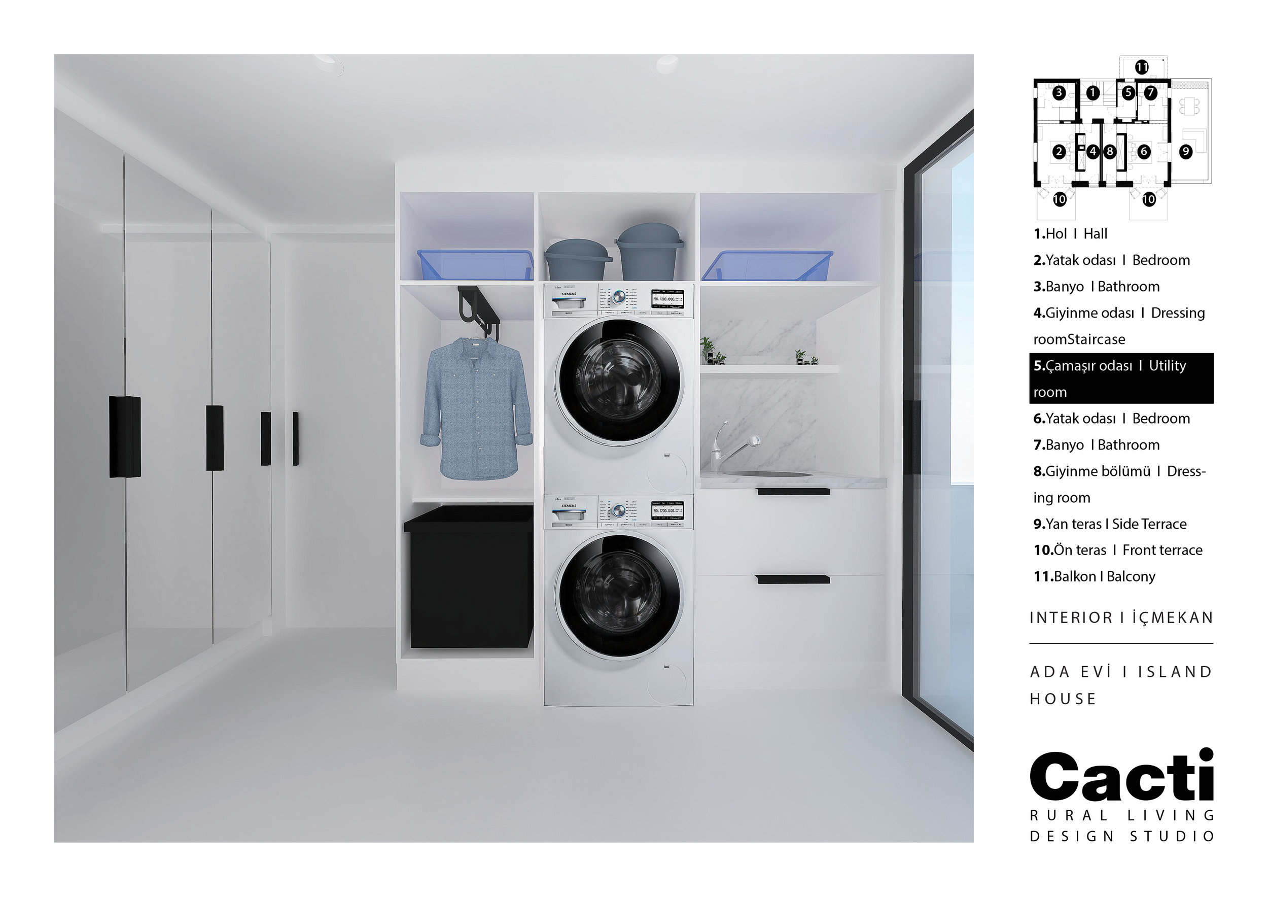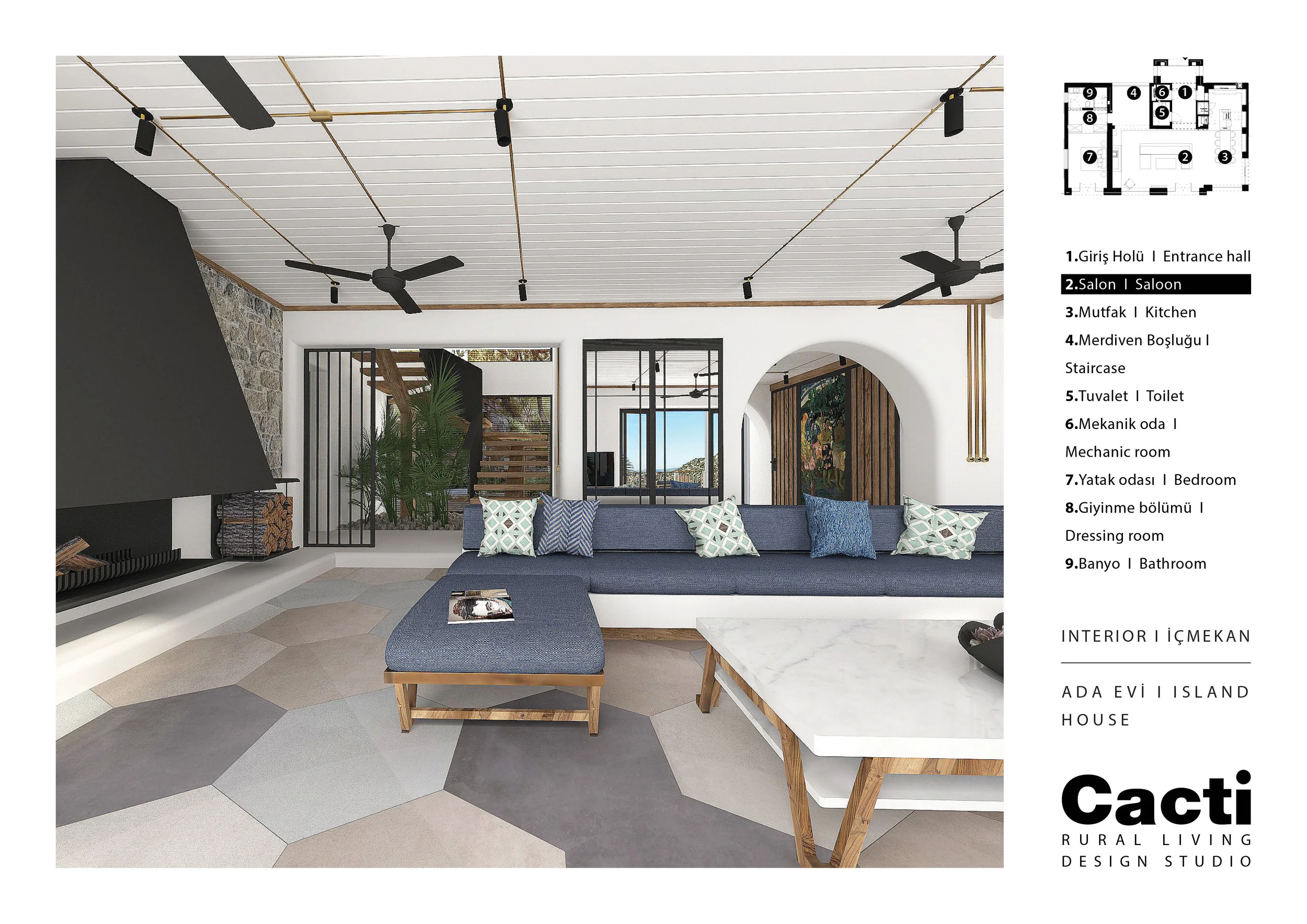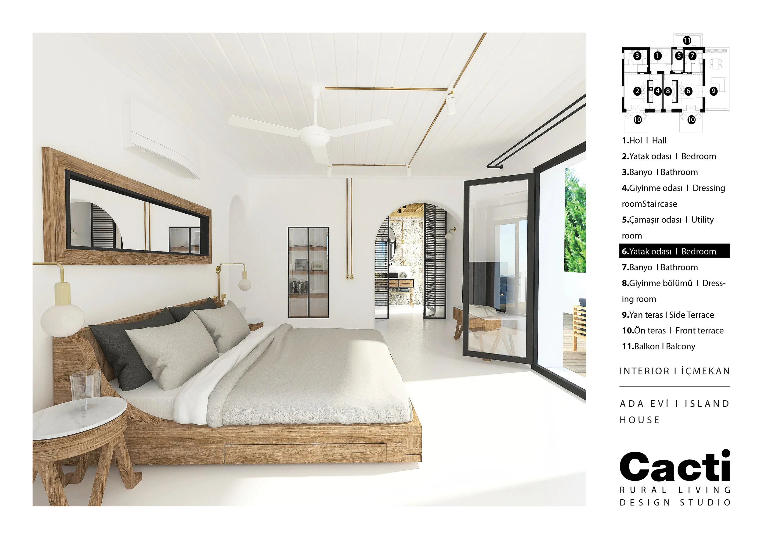 Alaçatı’nın bakir ve doğal alanlarında bulunan, 1000 yıllık zeytin ağacının etrafında yerleşecek şekilde tasarlanan 102m2 büyüklüğündeki ev, 4 oda, 4 banyo, 1 oturma odası, dışarıda ince uzun bir havuz, iki teras olarak tasarlandı.